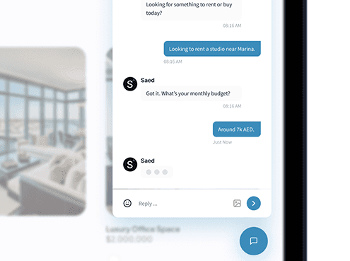 Saed feels like having a trained agent online 24/7. The responses are clear, relevant, and adapt perfectly to both rentals and sales. Since we started using it, our average response time dropped by 63%, — and we never miss a lead.